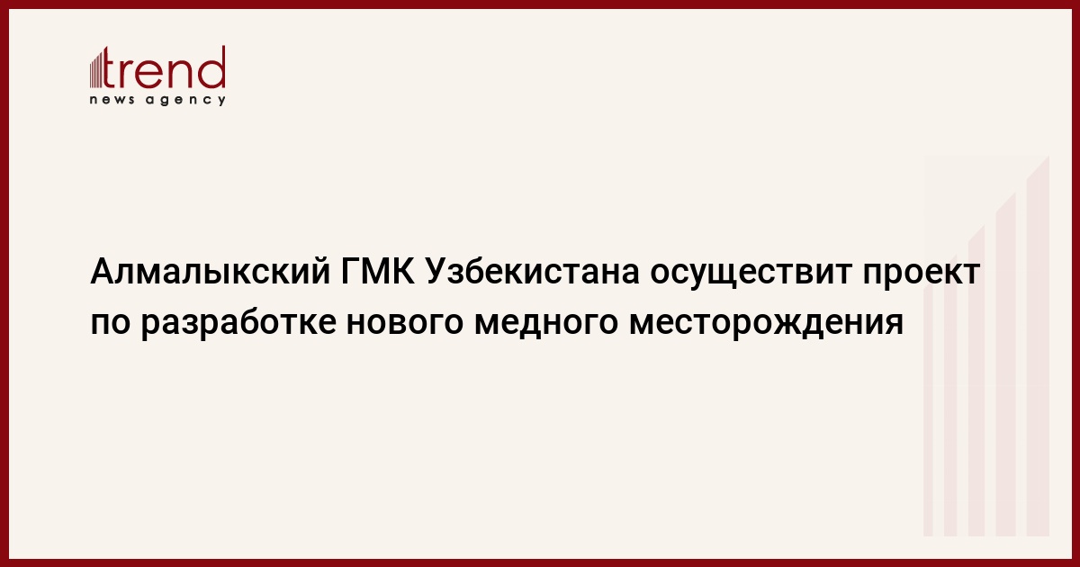 ТАШКЕНТ /Trend/ - АО "Алмалыкский горно-металлургический комбинат" (АГМК) до 2024 года осуществит проект стоимостью 420 миллионов долларов по разработке медно-порфирового месторождения "Ешлик II" (бывшее "Кызата", Ташкентская область), следует из постановления президента Узбекистана.