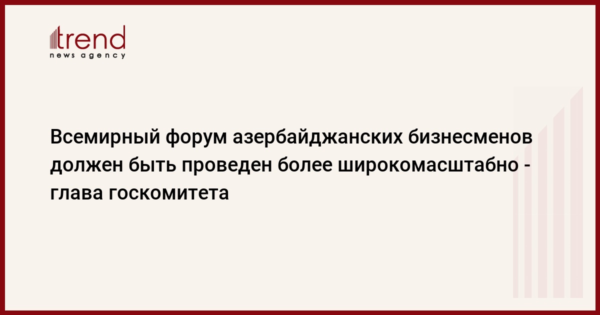 БАКУ /Trend/ - Необходимо провести более широкомасштабную работу по организации Всемирного форума азербайджанских бизнесменов, сказал журналистам в понедельник председатель Госкомитета по работе с диаспорой Назим Ибрагимов.