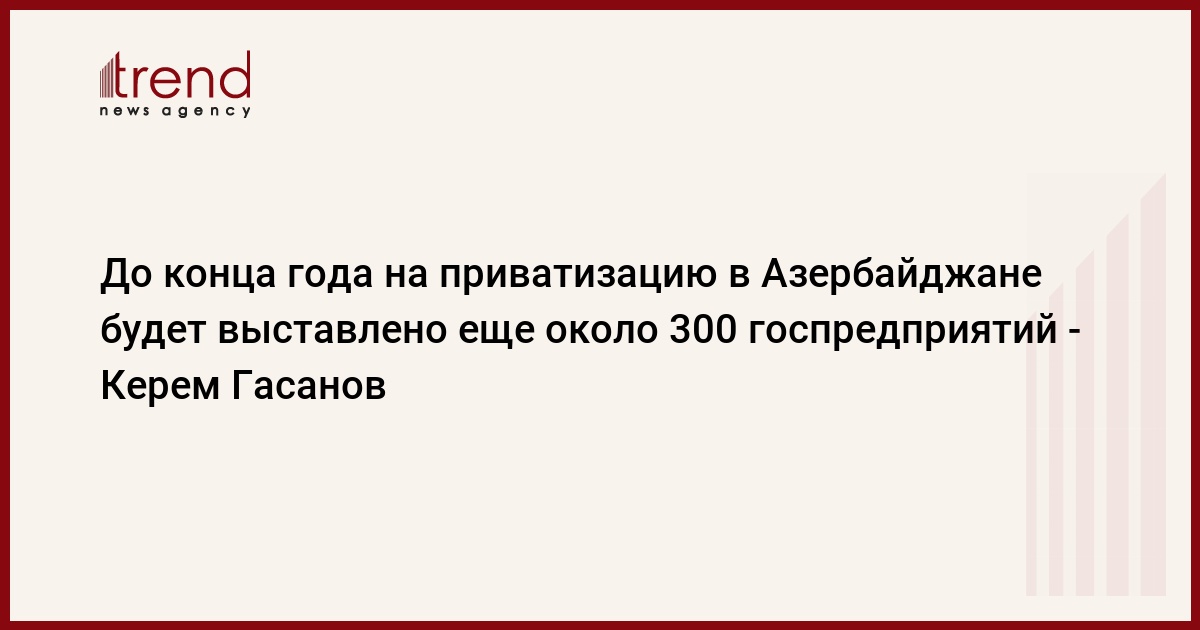 "До сегодняшнего дня на приватизацию было выставлено свыше 1100 государственных объектов и предприятий. В целом, в результате приватизации в госбюджет поступило более 93 миллионов манатов", - сказал Гасанов.