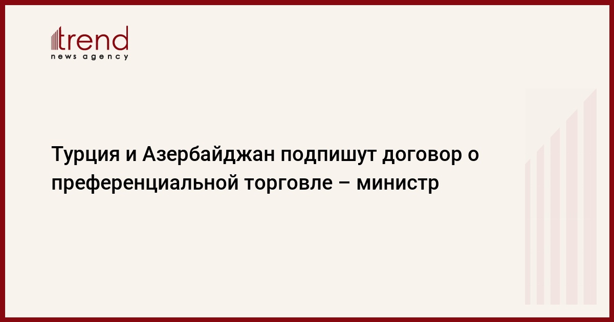 БАКУ /Trend/ - Турция и Азербайджан подпишут договор о преференциальной торговле, сказал министр экономики Турции Нихат Зейбекчи, сообщают в среду турецкие СМИ.