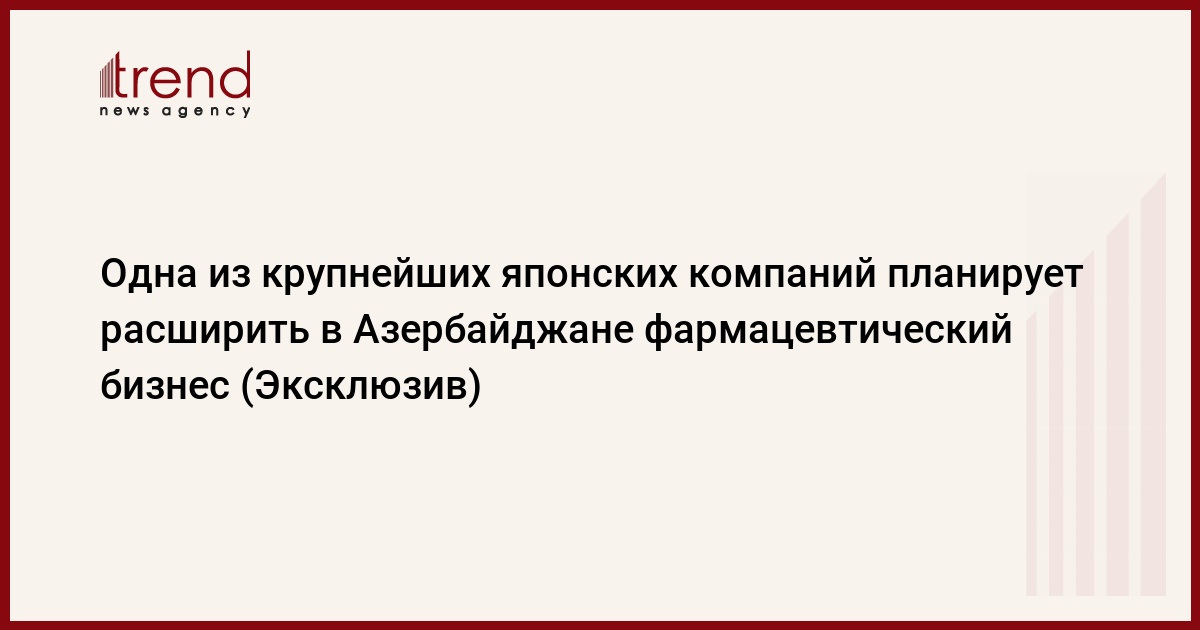 БАКУ /Trend/ - В 2018 году японская компания JGC планирует расширить в Азербайджане деятельность в сфере фармацевтики, сообщили Trend в Японском агентстве международного сотрудничества (JICA).