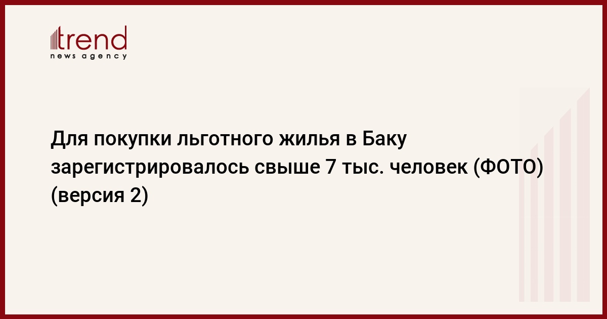 БАКУ /Trend/ - Регистрацию для покупки льготного жилья в Баку прошло свыше семи тысяч человек, сказал в четверг руководитель аппарата Государственного агентства по жилищному строительству при Президенте Азербайджана Анар Гулиев на презентации сайта льготного жилого комплекса в Ясамальском районе.