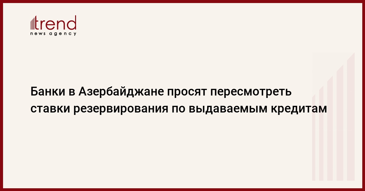 БАКУ /Trend/ - Банки в Азербайджане просят снизить ставки резервирования по выдаваемым кредитам, сообщил в понедельник Trend источник на банковском рынке.