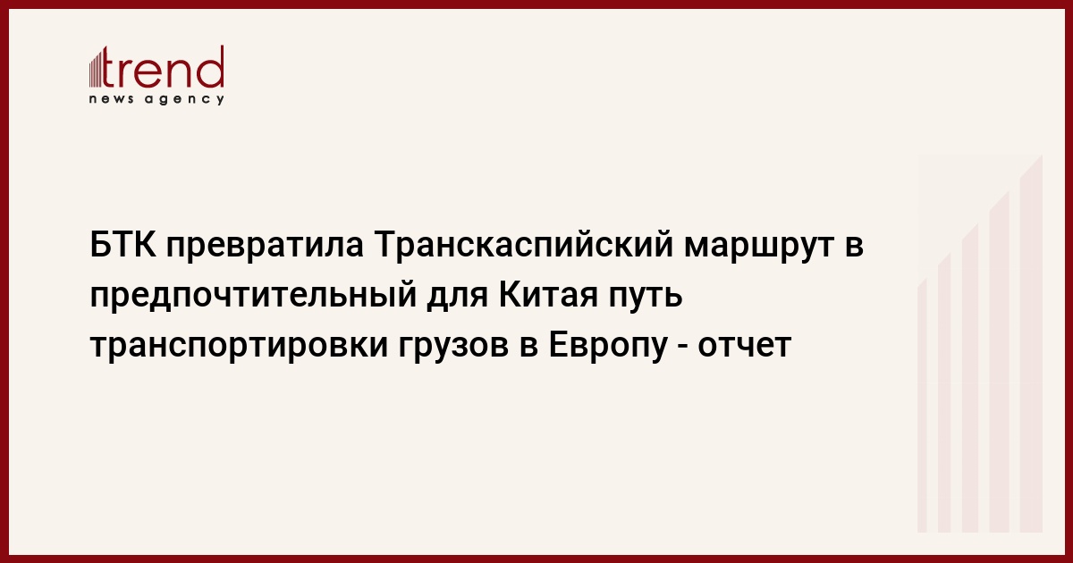 "Азербайджан ожидает, что первоначальная мощность БТК составит 5-6,5 миллиона тонн грузов, а в дальнейшем она вырастет до 17,5 миллиона тонн. Поэтому железная дорога БТК сделала ТМТМ предпочтительным вариантом для Китая для грузоперевозок в Европу", - сказано в отчете.
