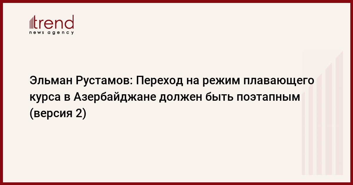 "Тот факт, что курс азербайджанского маната к доллару стабилизировался на уровне 1,7001 AZN/USD, не означает, что Центробанк Азербайджана отказался от полного перехода на плавающий режим курса маната", - сказал Рустамов.