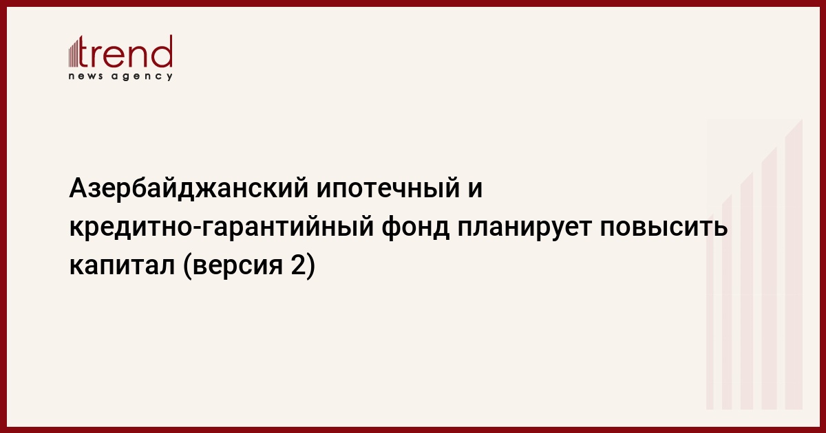 БАКУ /Trend/ - В 2018 году уставной капитал Азербайджанского ипотечного и кредитно-гарантийного фонда будет повышен на 100 миллионов манатов, до 466 миллионов манатов, следует из отчета международного рейтингового агентства Fitch Ratings.