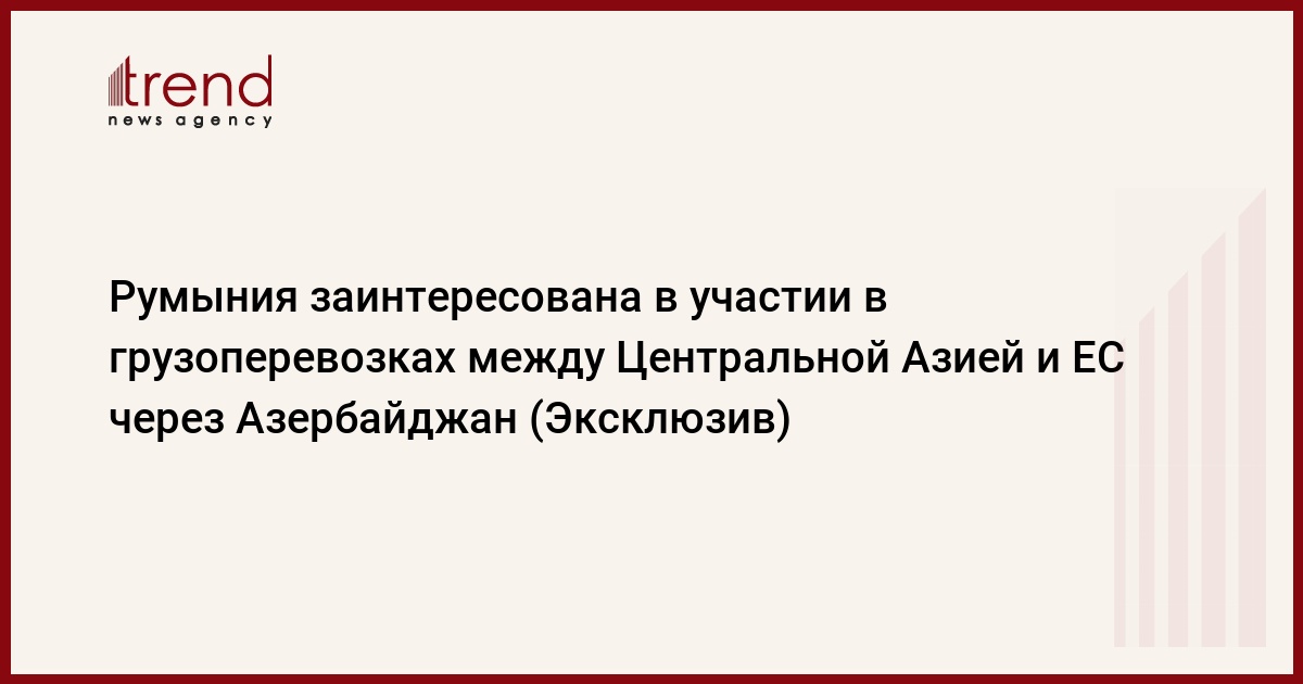 БАКУ /Trend/ - Азербайджан является важным звеном транспортного коридора Восток-Запад, и Румыния заинтересована в участии в многосторонних соглашениях, направленных на облегчение грузопотоков между Центральной Азией и Европой через территорию Азербайджана.