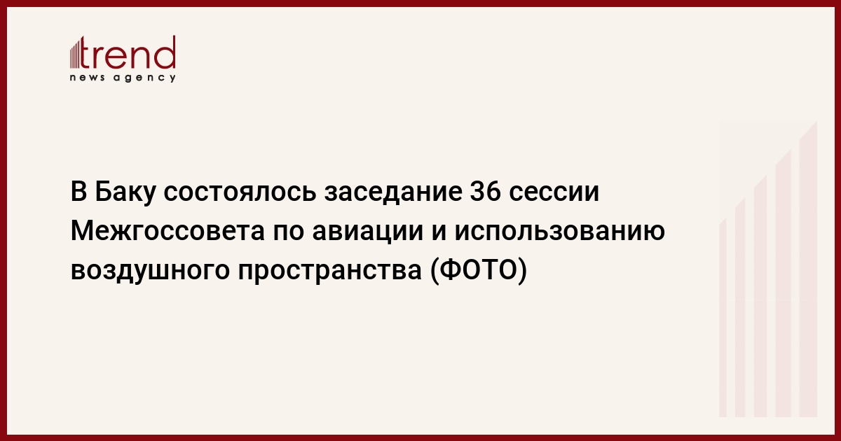 БАКУ /Trend/ - Состоялось заседание 36 сессии Межгосударственного Совета по авиации и использованию воздушного пространства, прошедшее в его штаб-квартире в городе Баку. В заседании приняли участие представители практически всех стран региона, сообщает в понедельник пресс-служба ЗАО "Азербайджанские авиалинии" (AZAL).