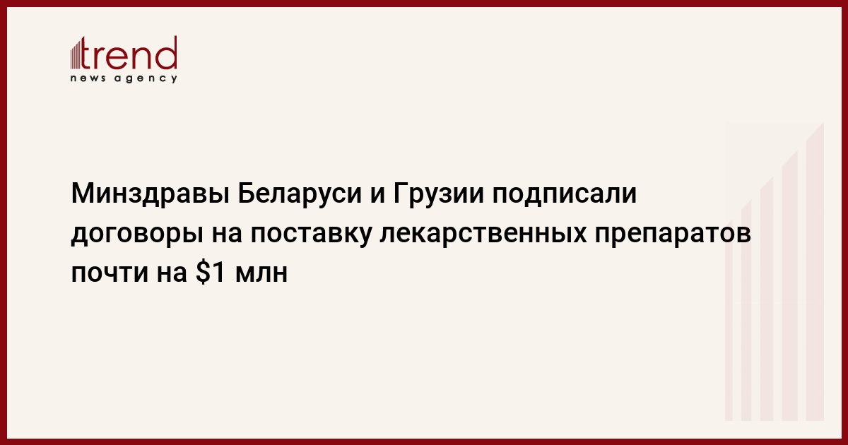 Как передает портал Грузия Online со ссылкой на пресс-службу белорусского Минздрава, подписаны договоры на поставку лекарственных препаратов почти на один миллион долларов.