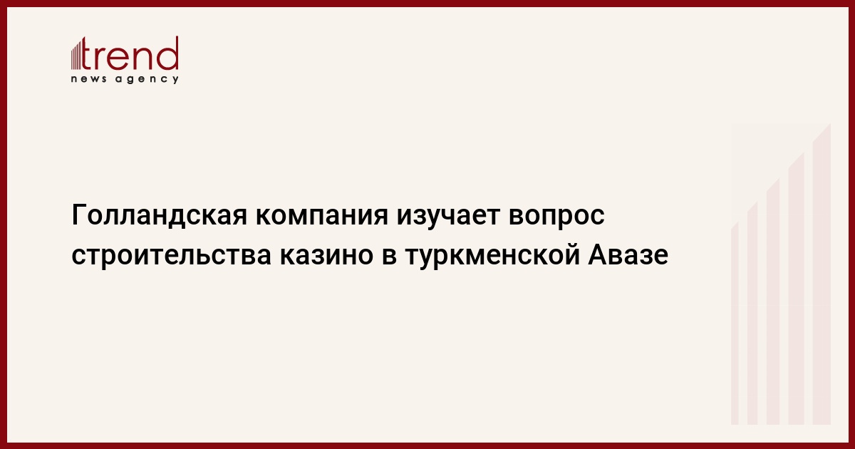 АШХАБАД /Trend/ - Голландская компания Storm International изучает вопрос инвестирования в проект по строительству казино в национальной туристической зоне «Аваза», говорится в информации Союза промышленников и предпринимателей Туркменистана (СППТ).