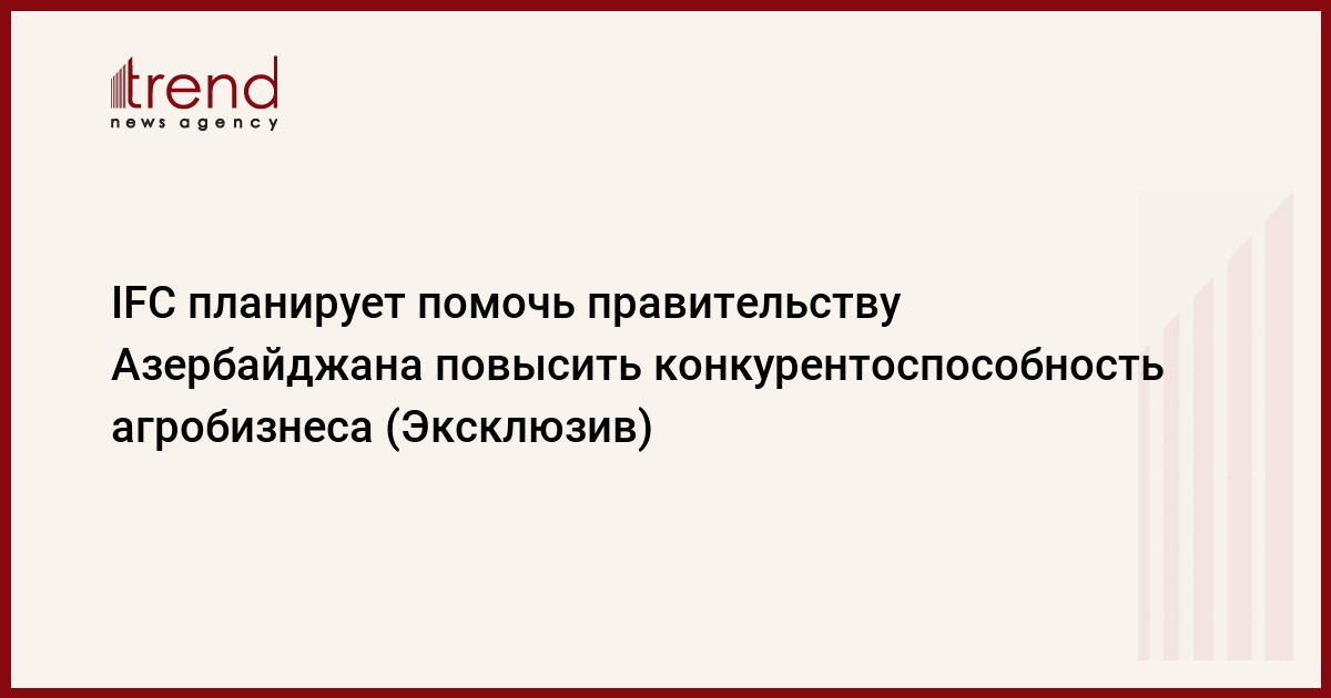 БАКУ /Trend/ - Международная финансовая корпорация (IFC) планирует помочь правительству Азербайджана повысить конкурентоспособность агробизнеса, сказал в интервью Trend региональный менеджер IFC по Южному Кавказу Ян ван Бильсен.