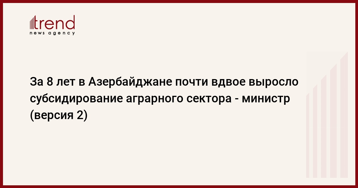 БАКУ /Trend/ - За последние восемь лет субсидирование аграрного сектора в Азербайджане по государственной линии выросло приблизительно вдвое.