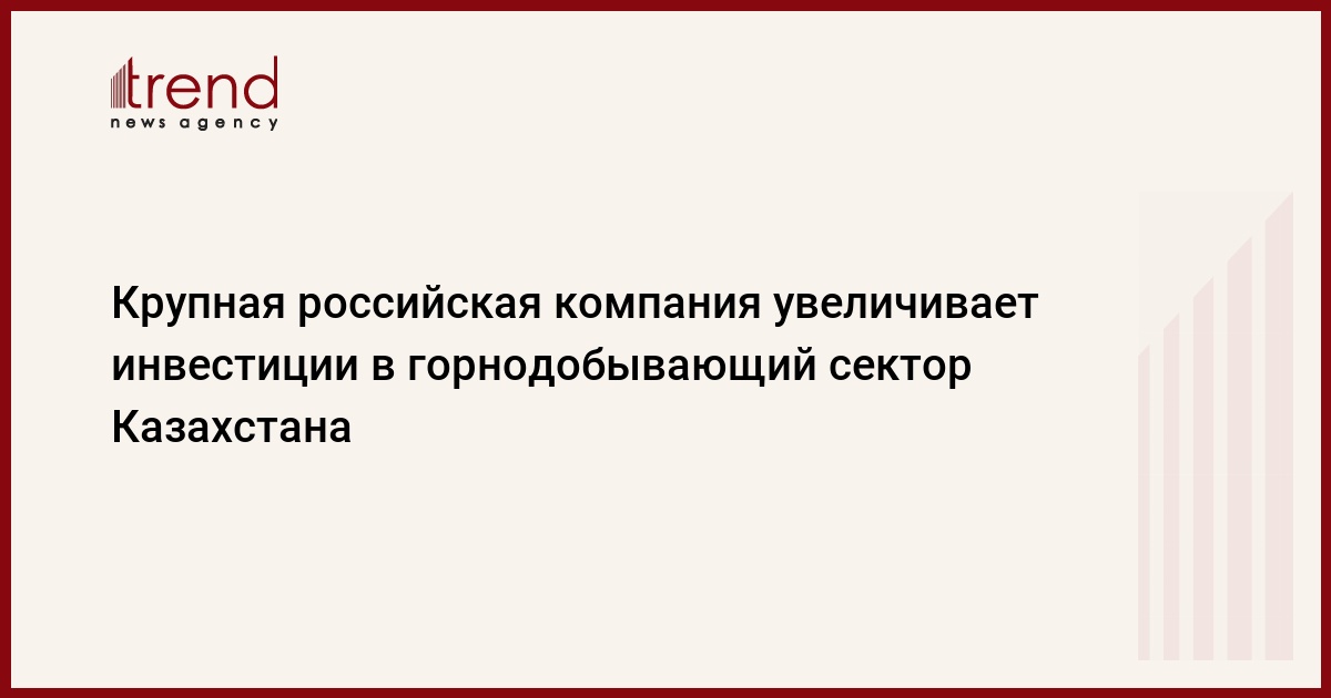 БАКУ /Trend/ - Русская медная компания (РМК) намерена увеличить инвестиции в горнодобывающий сектор Казахстана. Об этом говорится в сообщении компании, распространенном в среду.