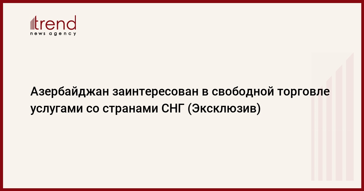 БАКУ /Trend/ - Азербайджан заинтересован в присоединении к деятельности рабочей группы по разработке Соглашения о свободной торговле услугами между странами Содружества Независимых Государств (СНГ), сообщили Trend в Исполнительном комитете СНГ.