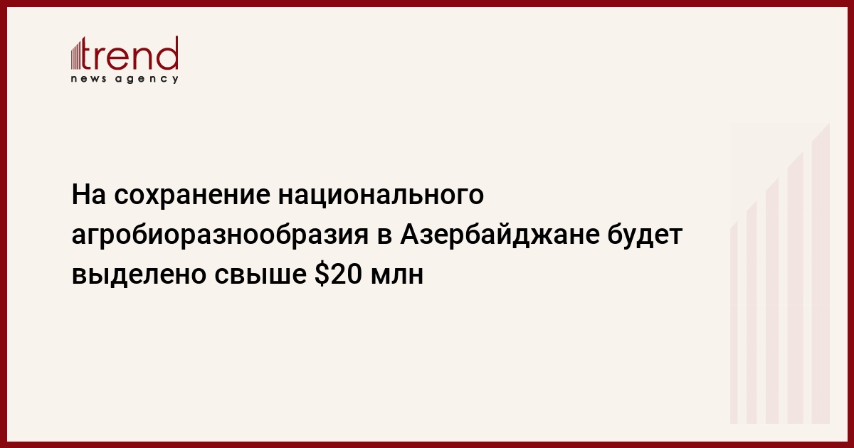 БАКУ/Trend/ - В Азербайджане будет выделено свыше 24 миллионов долларов на сохранение национального агробиоразнообразия.
