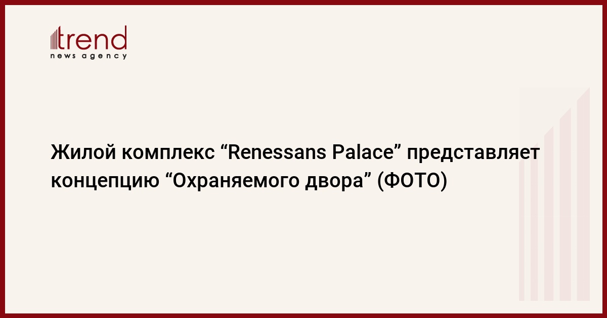 БАКУ /Trend/ - Жилой комплекс “Renessans Palace” представляет на своей территории в 1,5 гектара концепцию "Охраняемого двора". Двор с четыремя зданиями закрыт для въездов извне и предусмотрен только в качестве активной зоны для отдыха жильцов комплекса, сообщает "AS Qrup Investment" в понедельник.