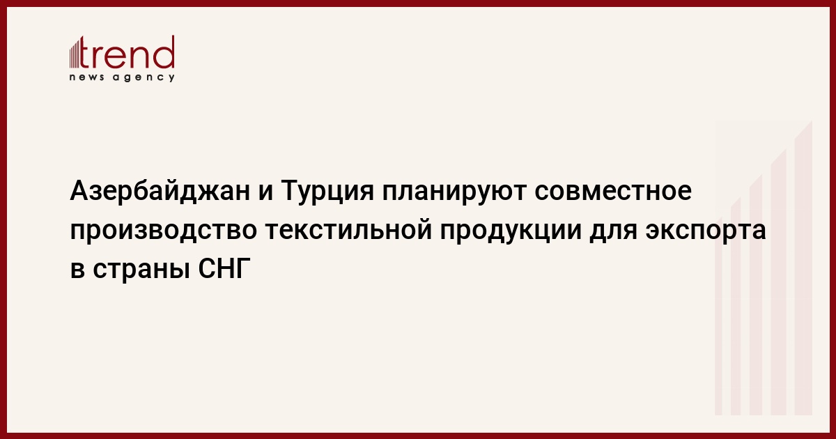 БАКУ /Trend/- В сентябре текущего года ожидается визит экспортной миссии азербайджанских производителей текстильной продукции в Турцию с тем, чтобы обсудить возможности совместного производства экспортоориентированной продукции.