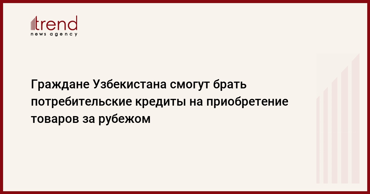 БАКУ /Trend/ - Граждане Узбекистана смогут воспользоваться финансовыми потребительскими кредитами, предоставляемыми банками и кредитными организациями, для приобретения товаров, произведенных как в республике, так и за её пределами, говорится в сообщении Центрального банка Узбекистана.