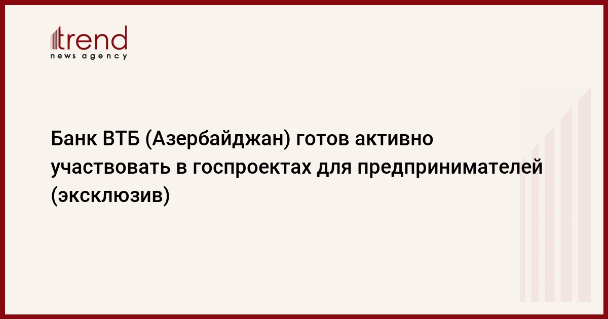 БАКУ /Trend/ - Банк ВТБ (Азербайджан) готов активно участвовать в проектах, реализуемых правительством страны для предпринимателей, сказал в интервью Trend председатель правления банка Евгений Кирин.