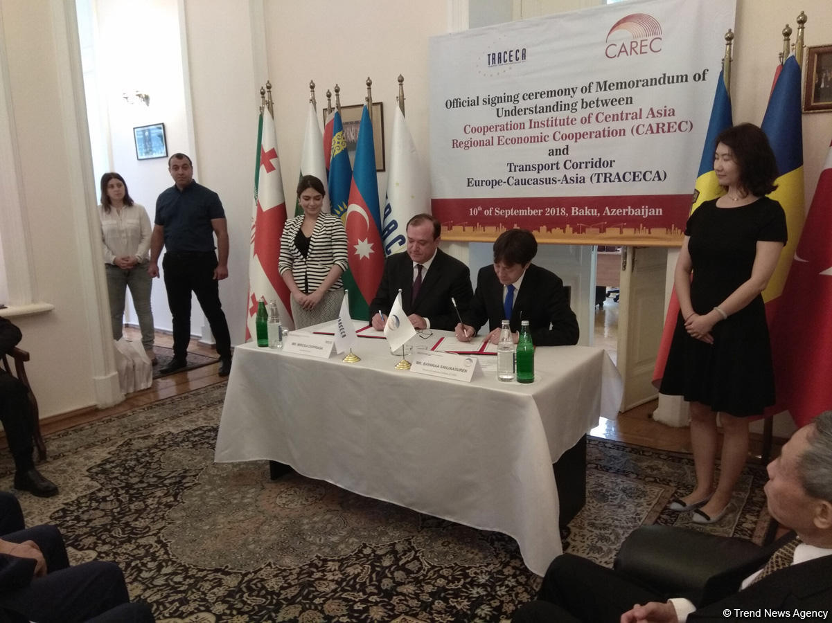 Подписи под документами поставили генеральный секретарь постоянного секретариата межправкомиссии TRACECA Мирча Чопрага и директор института CAREC Байара Санджасурен.