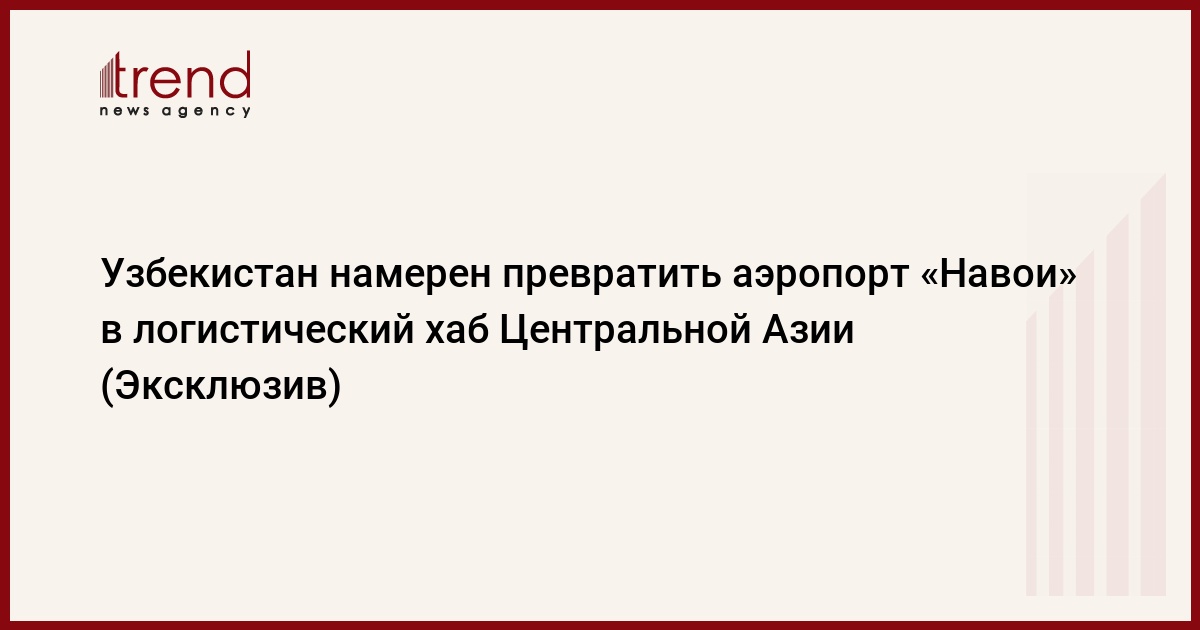 БАКУ /Trend/ - Узбекистан намерен превратить Международный интермодальный центр логистики (МИЦЛ) «Навои», созданный на базе грузового терминала в международном аэропорту в одноимённом городе, в логистический хаб Центральной Азии, сообщили Trend в «Узбекских авиалиниях».