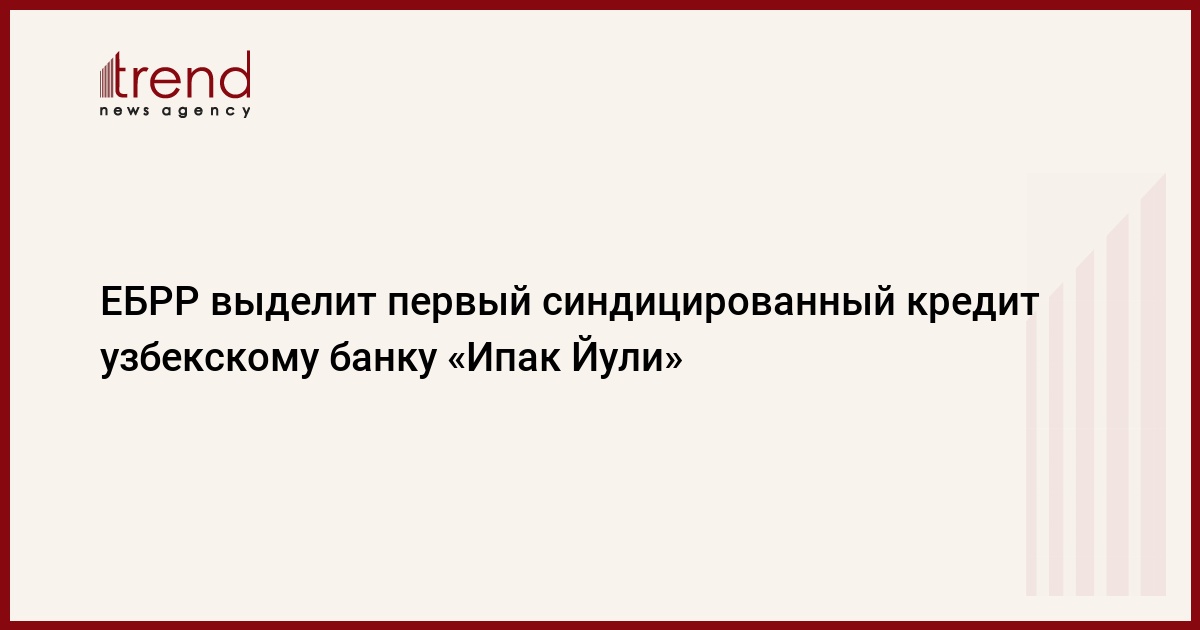 БАКУ /Trend/ - Европейский банк реконструкции и развития (ЕБРР) выделит первый синдицированный кредит на сумму до 20 миллионов долларов узбекскому акционерному коммерческому банку «Ипак Йули» для кредитования малого и частного бизнеса, сообщили в пресс-службе узбекского банка.