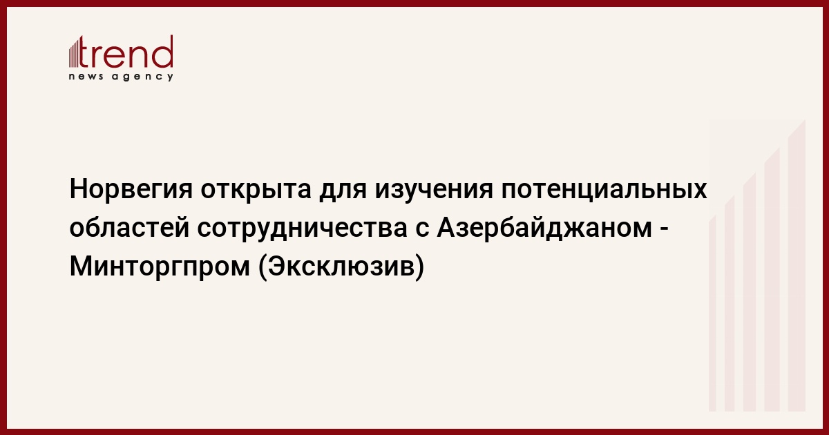 «Мы открыты для изучения потенциальных областей торгового сотрудничества между Норвегией и Азербайджаном, которые интересны нашим соответствующим бизнес-сообществам», - добавил он.