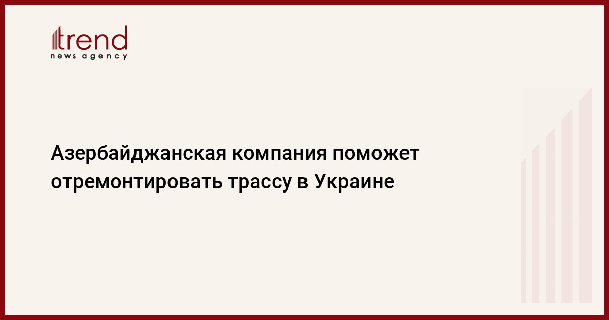 БАКУ /Trend/ - Государственное агентство автомобильных дорог Украины ("Укравтодор") подписало контракт с азербайджанской компанией AzVirt на ремонт дороги М-01 Киев - Чернигов - Новые Яриловичи на отрезке от Киева до села Кипти в Черниговской области, сообщает пресс-служба "Укравтодора".