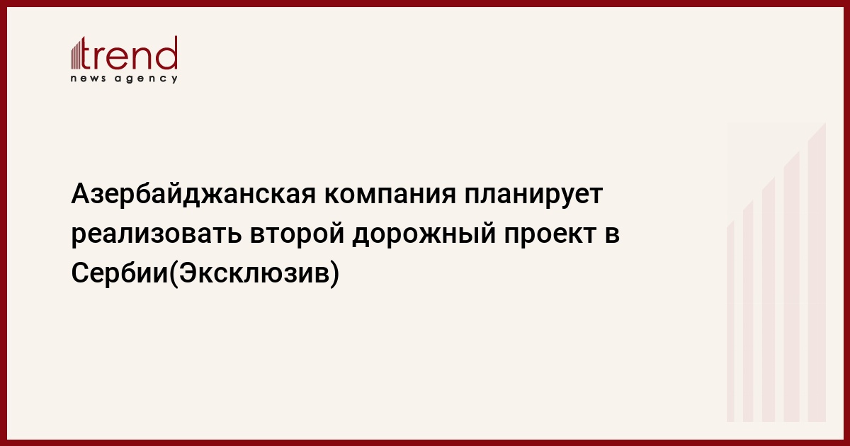 БАКУ /Trend/ - Крупнейшая азербайджанская строительная компания «AzVIRT», планирует приступить к реализации второго крупного дорожного проекта в Сербии.
