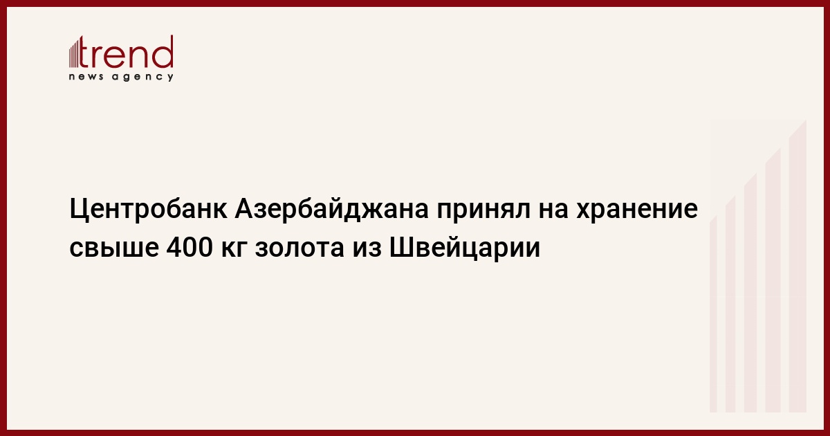 БАКУ /Trend/ - Центральный банк Азербайджана (ЦБА) принял на хранение 400,2 килограмма (12 865,2 тройских унции) золота из Швейцарии, передает в пятницу министерство финансов.