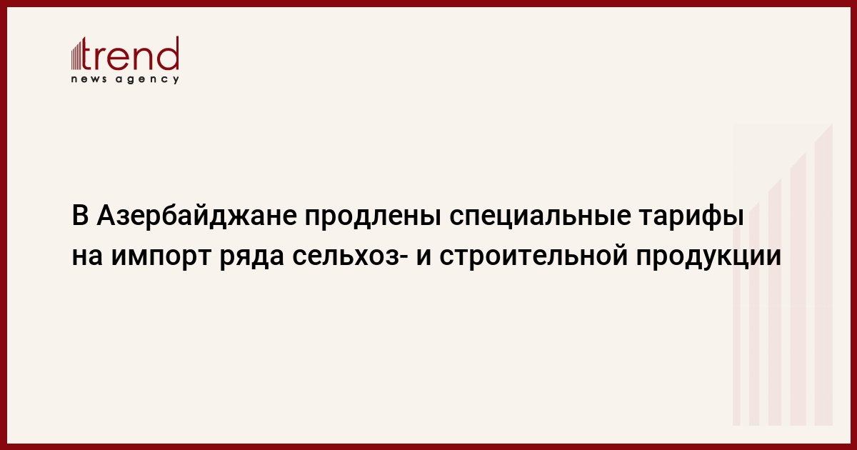 БАКУ /Trend/ - Кабинет министров Азербайджана продлил специальные ставки таможенных пошлин, применяемых к ряд видов импортируемой сельскохозяйственной продукции и строительных материалов с первого ноября 2016 года.