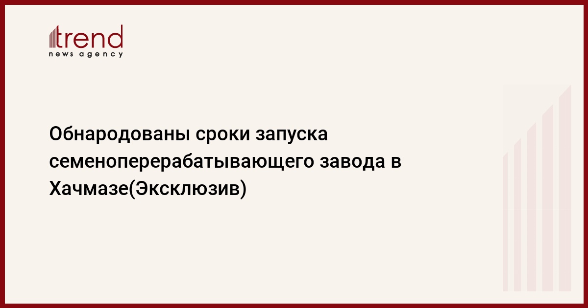 БАКУ /Trend/ - Новый семеноперерабатывающий завод в Хачмазе будет введен в эксплуатацию в течение первых двух месяцев предстоящего - 2019 года.