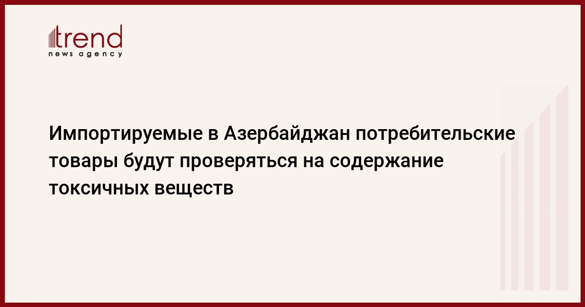 БАКУ /Trend/ - Импортируемая в Азербайджан потребительская продукция будет проверяться на содержание токсичных веществ, сообщили Trend в понедельник в Централизованной аналитической лаборатории ООО «Парк высоких технологий» Национальной академии наук Азербайджана (НАНА).