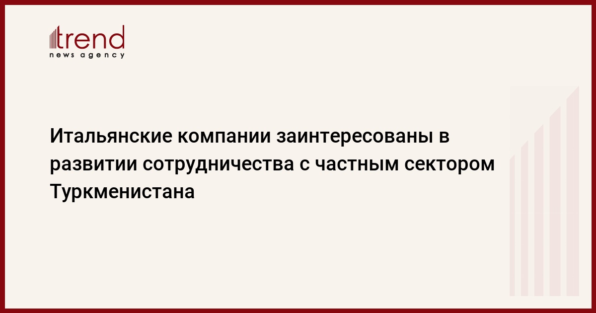 Согласно информации, посол Италии в Туркменистане Диего Унгаро отметил, что объем туркменского экспорта в Италию с начала этого года увеличился почти в три раза, а импорта итальянской продукции в Туркменистан – на пятьдесят процентов. "Представители деловых кругов Италии выразили особую заинтересованность в наращивании продуктивных связей с частным сектором туркменской экономики", - говорится в комментарии МИД Туркменистана.