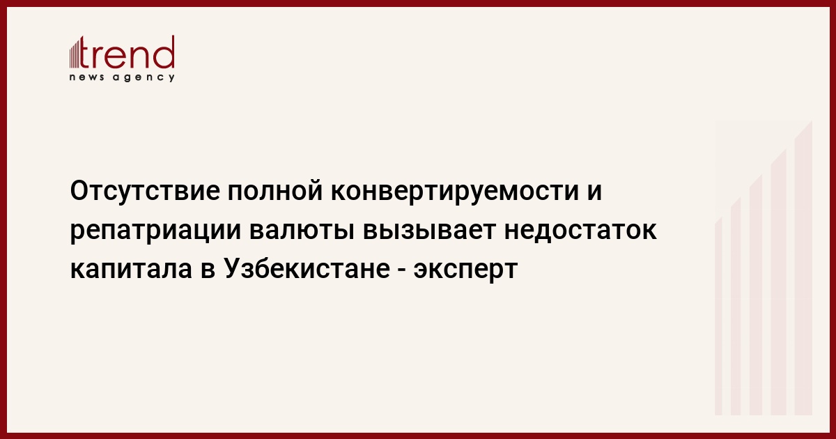 БАКУ /Trend/ - Чем дольше задерживается открытие полной конвертируемости и репатриации валюты, тем дольше Узбекистан будет испытывать недостаток капитала, пишет аналитик Asia Frontier Capital Скотт Ошерофф, передают узбекские СМИ.