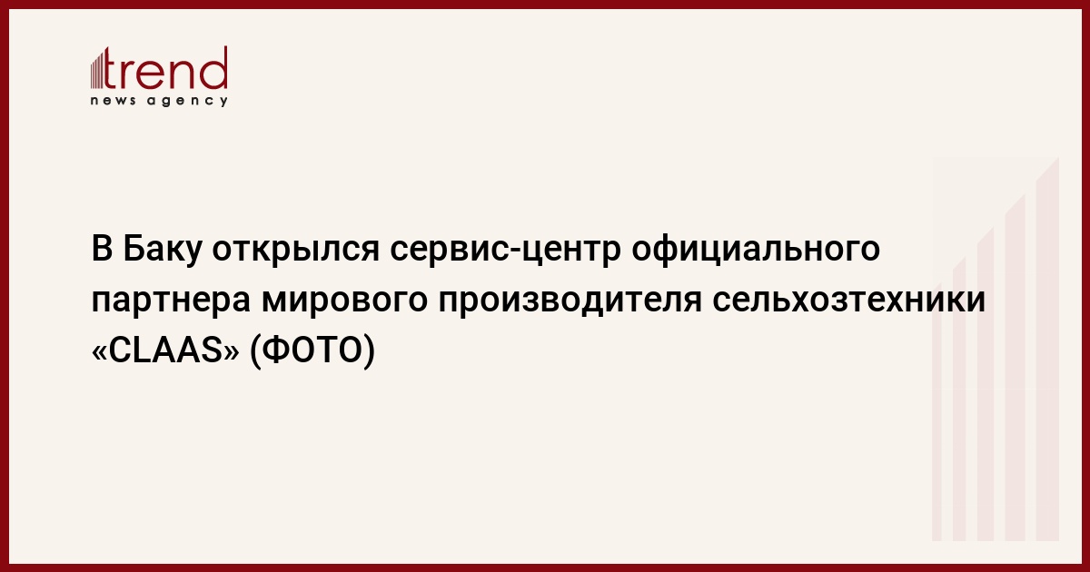 БАКУ /Trend/ - Cервис-центр компании «4S», официального партнера мирового производителя сельхозтехники «CLAAS», открыл свои двери для клиентов и партнеров в Баку, сообщает компания в четверг.