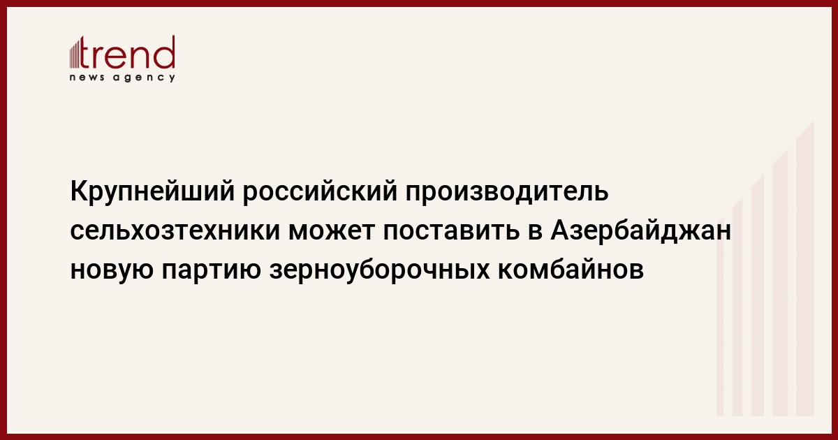БАКУ /Trend/ - Крупнейшая российская компания – производитель сельхозтехники "Ростельмаш" ведет переговоры с официальным дилером, компанией "Grand Motors", по поставке 30-50 зерноуборочных комбайнов в Азербайджан.