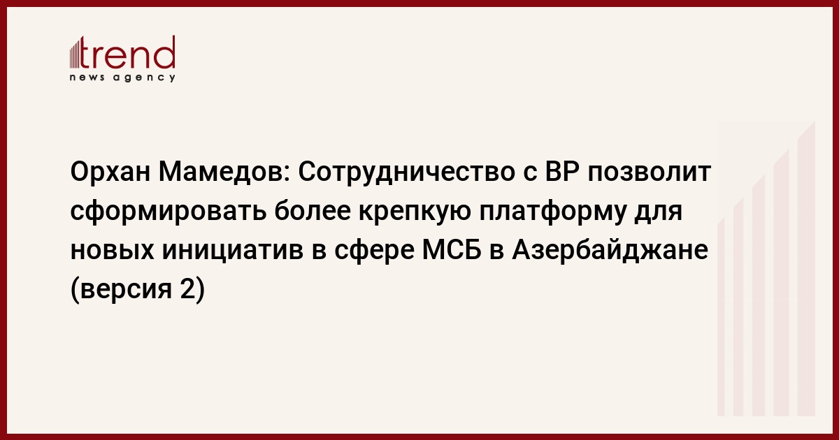 БАКУ /Trend/ - Сотрудничество с компанией BP позволит сформировать более крепкую платформу для реализации новых инициатив в сфере малого и среднего бизнеса в Азербайджане.