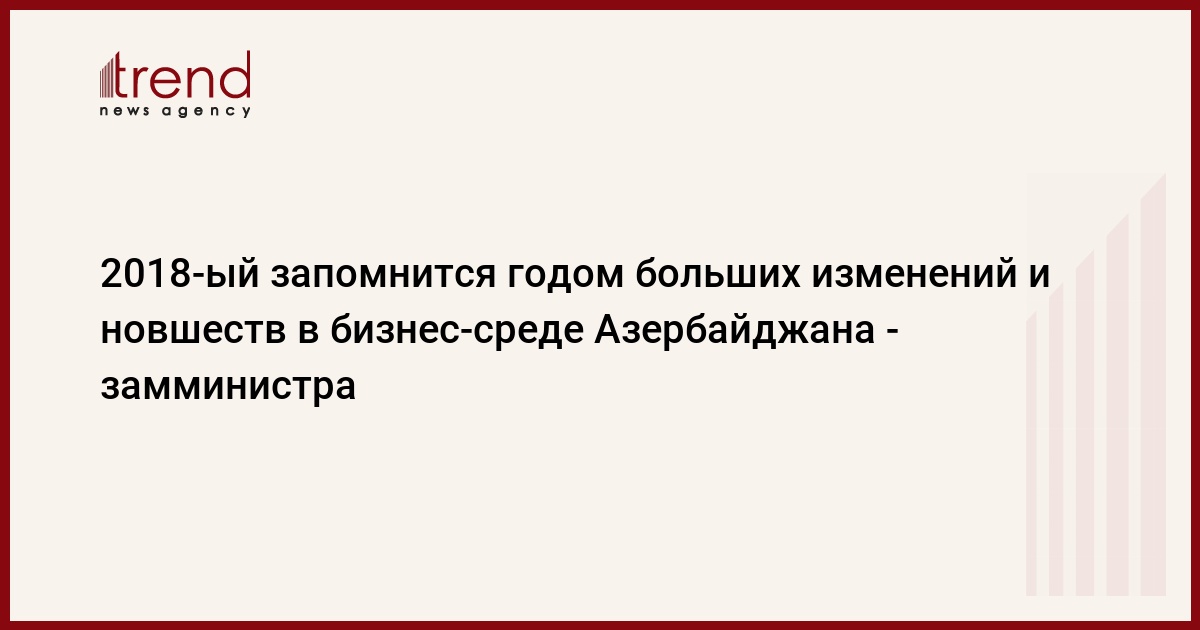 БАКУ /Trend/ - Завершающийся 2018 год запомнится как период больших перемен и новшеств в деловой среде Азербайджана, сказал в понедельник заместитель министра по налогам Метин Эйнуллаев на «Форуме участников внешней торговли: Применение системы пропуска "Зеленый коридор"».
