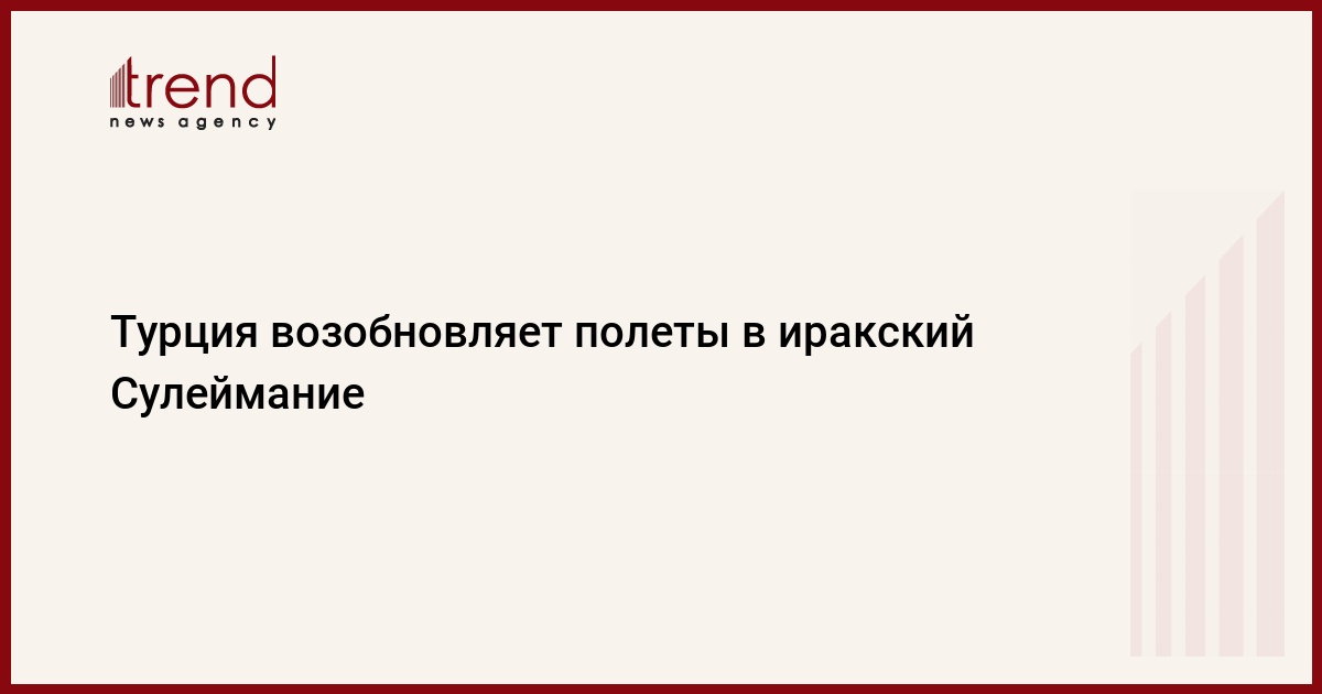 БАКУ /Trend/ - Турция возобновляет полеты в иракский Сулеймание, пишет в среду Trend со ссылкой на сообщение министерства транспорта и инфраструктуры Турции.