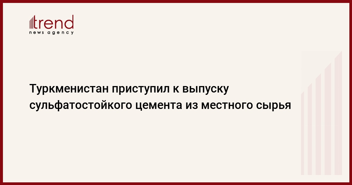 АШХАБАД /Trend/ - Цементный завод в туркменском городе Балканабат освоил производство сульфатостойкого цемента из местного сырья, сообщает Trend со ссылкой на газету «Нейтральный Туркменистан». Выпущена первая партия - около 7000 тонн - высококачественного строительного материала.