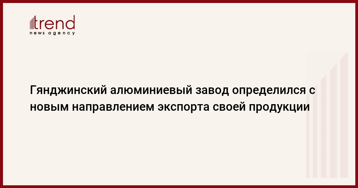 «Продукция предприятия экспортируется в ряд стран Европы, и бывшего союза, а в ближайшие месяцы будет налажен экспорт на итальянский рынок. Для того, чтобы обеспечить непрерывность экспортных поставок Гянджинский алюминиевый завод планирует также увеличить объемы производства», - сказал собеседник агентства.