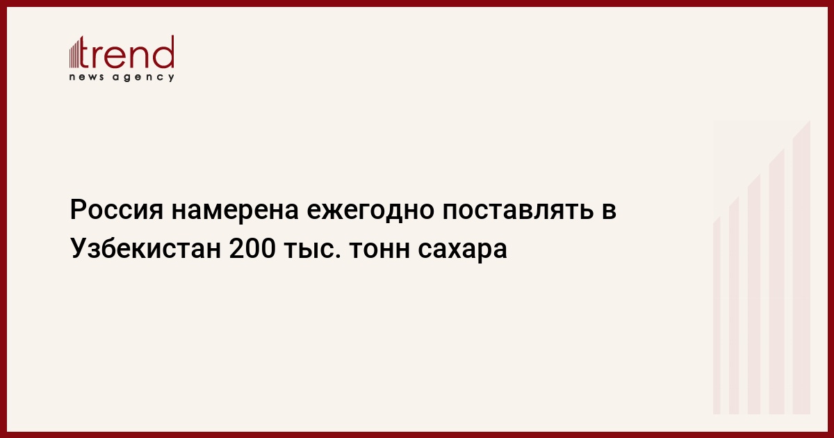 БАКУ/Trend/ - Россия просит предоставить квоту на ежегодную поставку 200 тысяч тонн сахара в Узбекистан, сообщает Trend со ссылкой на министра сельского хозяйства Узбекистана Жамшида Ходжаева.