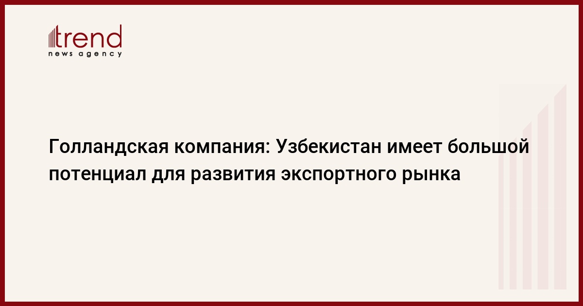 В компании подчеркнули, что в последние годы в Узбекистане наблюдаются очень позитивные сдвиги в плане стимулирования международной торговли. Например, высокопоставленные узбекские политические деятели посещают Нидерланды для проведения переговоров о развитии бизнеса.