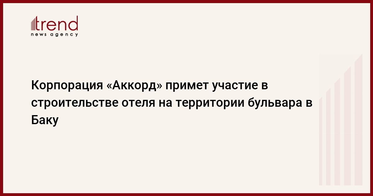 БАКУ /Trend/ - Производственно-строительная корпорация «Аккорд» примет участие в реализации проекта строящегося отеля, расположенного на территории Бакинского приморского бульвара в Баку, сообщил в пятницу Trend инженер-конструктор компании Рауф Азизов.