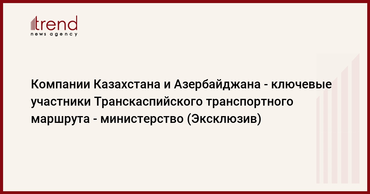 БАКУ/Trend/ - Ключевыми участниками Транскаспийского международного транспортного маршрута (ТМТМ) являются национальные транспортные компании Казахстана и Азербайджана, сообщил Trend в понедельник представитель министерства индустрии и инфраструктурного развития Казахстана.