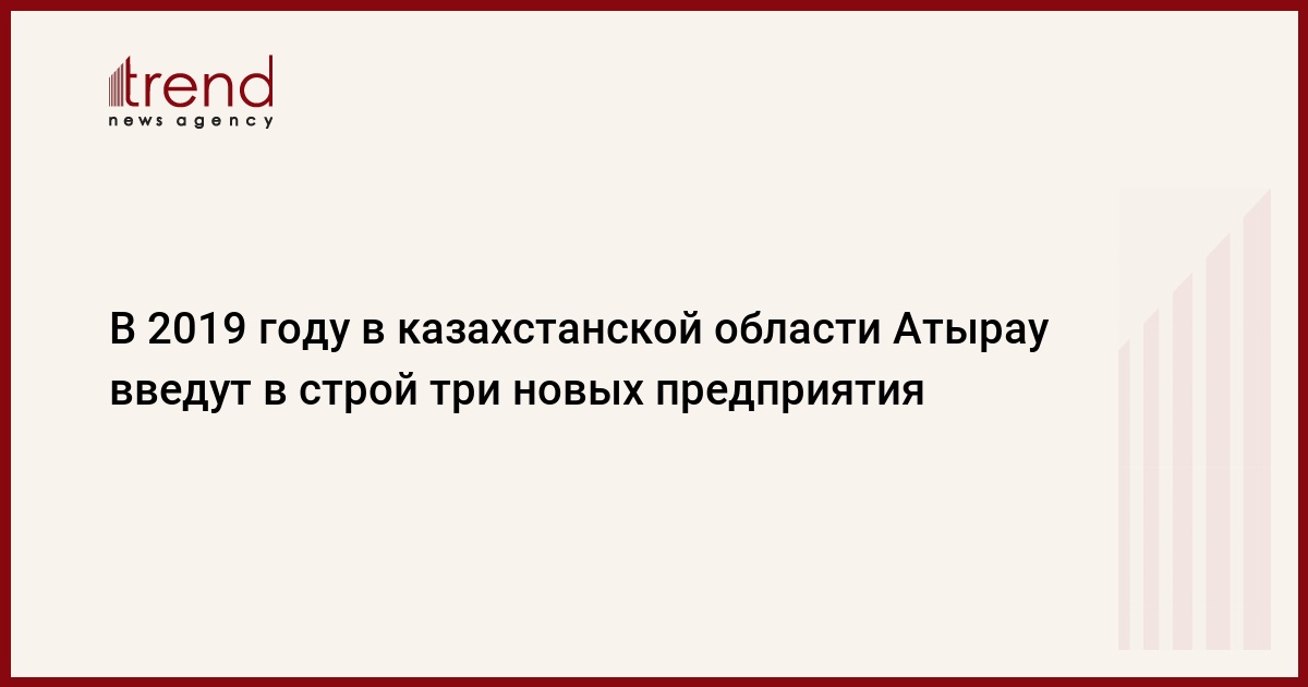 БАКУ /Trend/ - В 2019 году в области Атырау в Казахстане будут реализованы еще три инвестиционных проекта, сообщает Trend в четверг со ссылкой на МИА «Казинформ».