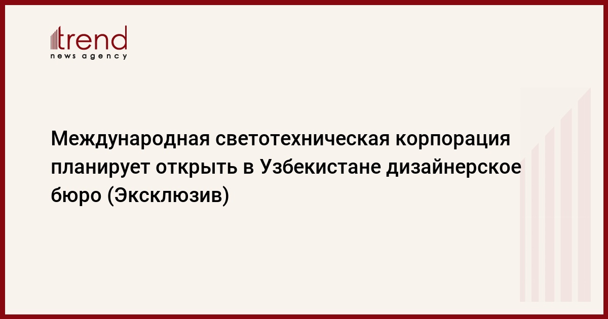 БАКУ/Trend/ - Российская международная светотехническая корпорация БООС ЛАЙТИНГ ГРУПП (БЛ ГРУПП) планирует открыть в Узбекистане дизайн-бюро для разработки комплексных дизайнерских, технических и технологических решений в сфере освещения объектов различного назначения на территории страны, рассказал в интервью Trend представитель компании.