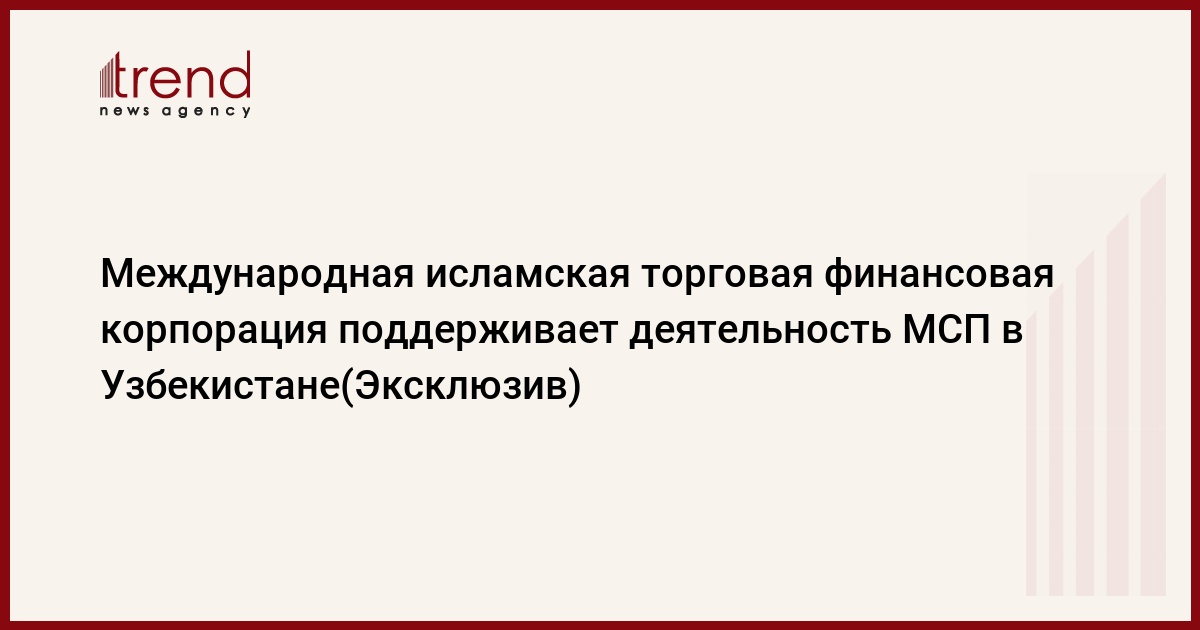 БАКУ/Trend/ - Предоставление линий финансирования от Международной исламской торговой финансовой корпорация (ITFC) для малых и средних предприятий (МСП) в Узбекистане позволяет владельцам бизнеса расти, получая доступ к финансам, где и когда это требуется.