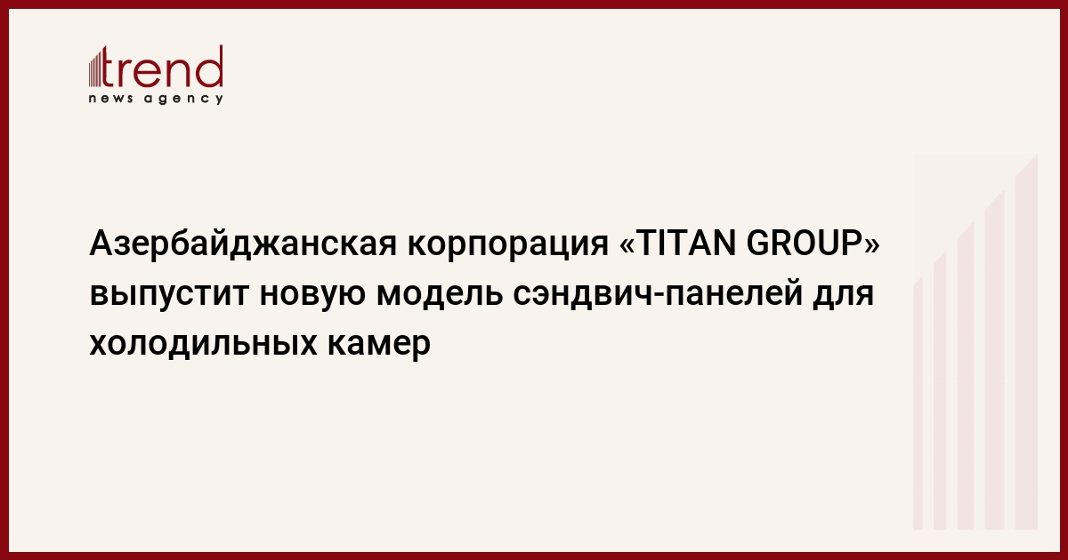 БАКУ /Trend/ - Азербайджанский производитель промышленных товаров - корпорация "TITAN GROUP" разработала новую модель сэндвич-панелей, предусмотренных для камер охлаждения, сообщила Trend коммерческий директор данной компании Земфира Исмайлова.